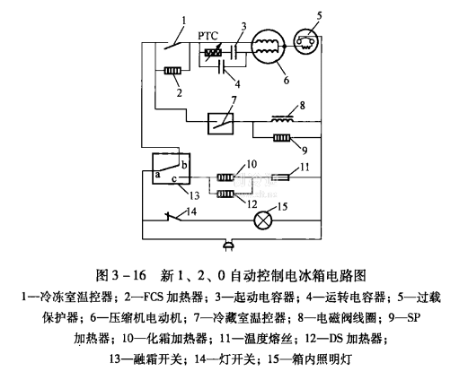 圖3一16為新1、2、0自動控制電冰箱電路,它主要包括溫度控制電路和制冷性能補償電路。
