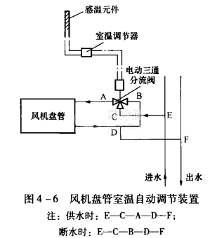室溫自動調(diào)節(jié)方法多采用安裝在風機盤管空調(diào)器冷熱水進口處的三通分流閥改變流量的變流量方式進行水量控制,達到對室溫的調(diào)節(jié)目的。