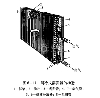 用于小型冷藏庫的間冷式蒸發器,其構造如圖6一11所示。