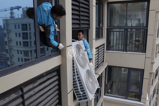 ④可燃制冷劑產品的室外機在開箱前應準備好可燃制冷劑濃度檢測儀,將密封膠帶打開一個小口。將濃度檢測儀放入箱內檢查是否有制冷劑泄漏。發現有泄漏情況.應小心割開密封膠帶,讓箱內制冷劑殘余氣體排出,檢查室外機是否有漏點,排除屬于生產殘余少量制冷劑造成誤判的情況,如果確認室外機存在翻點.應將產品運回維修點進行進一步檢查處理。其他非可燃制冷劑產品不作此要求。
