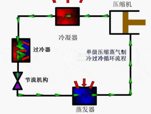 ②飽和狀態、飽和溫度和飽和壓力:制冷劑在封閉容器內的蒸發過程中,隨著蒸發的進行,氣相空間蒸汽分子的濃度不斷增大,返回液體的分子也不斷增多。當氣化分子數和凝結分子數處于動態平衡時,宏觀上蒸發現象將停止。這種氣化和凝結的動態平衡狀況稱為飽和狀態。飽和狀態的壓力稱為飽和壓力,溫度稱為飽和溫度。飽和溫度和飽和壓力之間存在單值的對應關系。