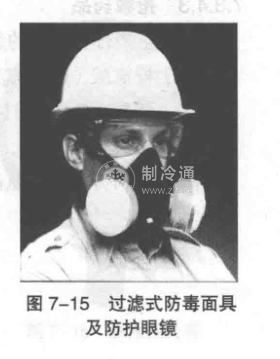 正確選擇和合理使用個(gè)人防護(hù)用品是預(yù)防職業(yè)傷害、保證人身安全和正常生產(chǎn)的重要措施。這些器材用于頭部防護(hù)、眼睛和臉部保護(hù)、呼吸保護(hù)、聽力保護(hù)、手部保護(hù)、足部防護(hù)等(圖7-14和圖7-15),一般包括防毒面具、防毒衣、手套、合成圍裙、面罩、防塵口罩、空氣過(guò)濾呼吸罩、防護(hù)眼鏡、工作靴等。在此對(duì)部分常見防護(hù)用品介紹如下。