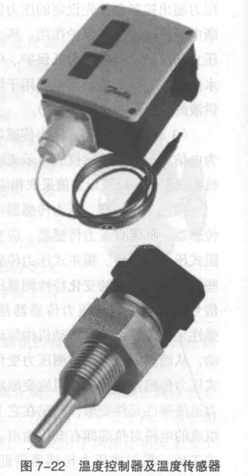 通過監視制冷壓縮機及系統各部位的溫度,可以判斷設備是否處于正常的工作狀態,用以指導系統的操作以及設備的檢修。需要監控的沮度主要包括:壓縮機吸排氣溫度、潤滑油溫度、冷卻水進出口溫度、冷媒進出口溫度、庫房溫度、軸封室溫度、電動機及壓縮機的軸承溫度等。有些溫度測量僅起到監視作用,還有一些可同時起到報警或停機等保護作用,如油溫高(低)保護、排溫高保護、水溫高(低)保護等。常用的溫度監控設備主要包括溫度計、溫度控制器、溫度傳感器等(圖7-22)。