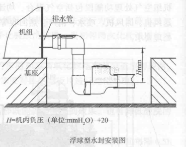 e.機組的冷凝水管必須安裝水封,水封的高度應能滿足圖3一100(注:機內負壓指盤管段的負壓)的要求。