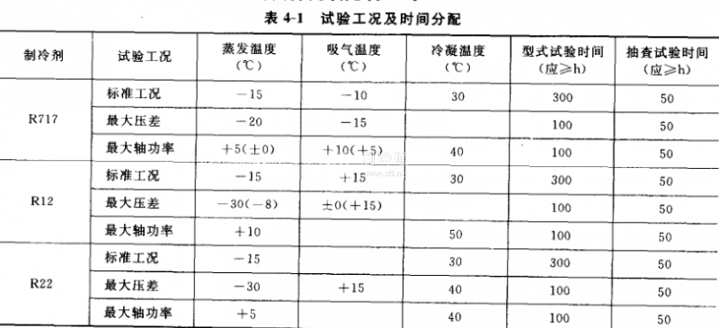 大于冷凝壓力的±1%;吸氣溫度波動應(yīng)不大于表4-1中規(guī)定的政府3℃;試驗(yàn)數(shù)據(jù)應(yīng)在制冷系統(tǒng)(壓縮機(jī))建立熱平衡狀態(tài),試驗(yàn)工況穩(wěn)定0. 5 h才開始測定,對各種工況,每間隔20min測量一次,直至連續(xù)四次測得數(shù)據(jù)的波動狩合規(guī)定為止。