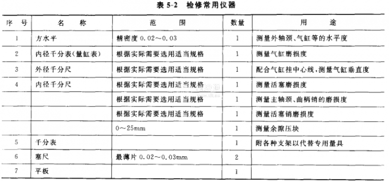 ④檢修的工具與儀表 檢修的儀器如表5-2所示。