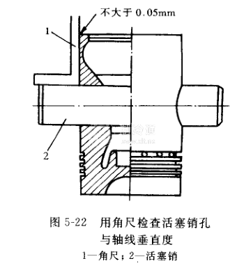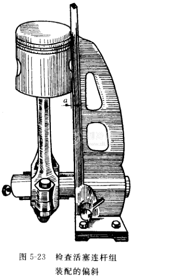 活塞連桿組裝后,應按圖5-23方法測清其垂直性能,所測得的a值在100mm內(nèi)不得大于0.05mm。