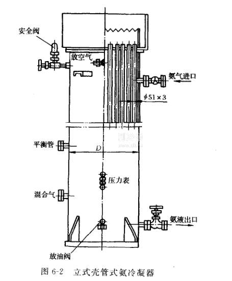 此外,在冷凝器的主體上裝有進(jìn)氣、出液、放空氣、均壓及安全等管路接頭,并接通相應(yīng)的管路和設(shè)備。