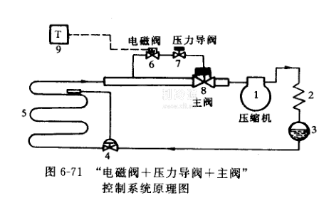 圖6-71為此種控制方式。壓力導閥與主閥工作原理如前所述,同時,由于主閥又受電磁閥控制,只有因介質溫度使電磁閥開啟.主閥才投入工作,若電磁閥關閉則主閥也關閉。