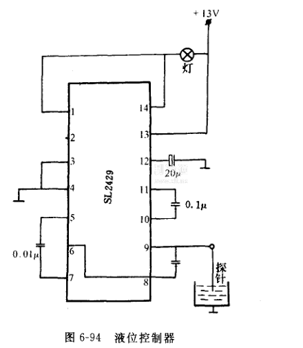 至于制冷劑的液位控制已在相應的設備中闡述了,另外,也常用集成電路SL2429按圖6-94所示進行液面自動控制。