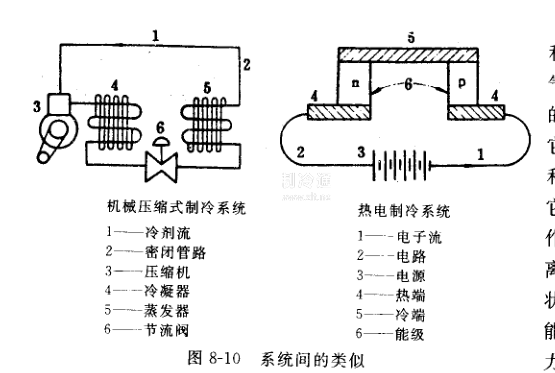 機(jī)械壓縮式制冷與熱電制冷系統(tǒng)間存在著一些類似的地方,各對應(yīng)部位見圖8-10。