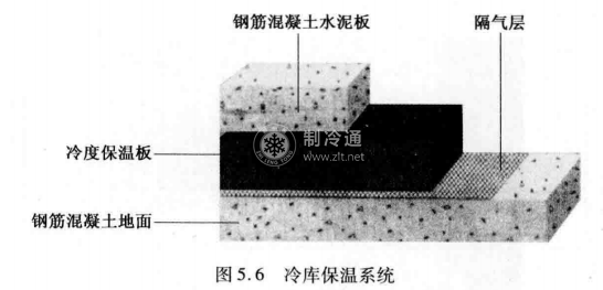 冷庫建筑內(nèi)外環(huán)境溫差大,水蒸氣滲透壓力嚴(yán)重,使應(yīng)用于冷庫建筑的保溫材料面臨極為嚴(yán)峻的考驗。XPS板材具有幸越的抗水蒸氣滲透和抗壓性能,使其在冷庫建筑及冷藏車應(yīng)用中更具有優(yōu)勢,可應(yīng)用于地面、內(nèi)外墻、屋頂或吊頂?shù)?/span>,使冷庫及冷藏車性能恒久不變,防止冷凝結(jié)露。冷庫保溫系統(tǒng)如圖5.6所示。