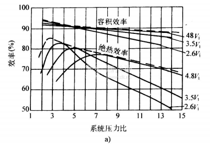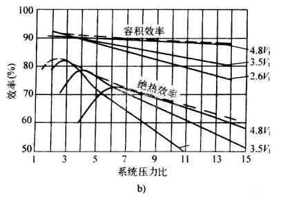 如果系統運行壓力基本不變,則有可能固定壓縮機的內容積比以便提高運行效率。壓縮機制造廠提供三種或四種排氣口尺寸以供選擇來適應常見的運行工況。
