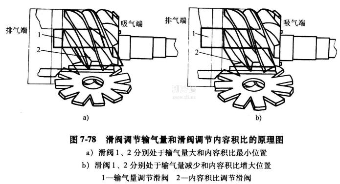 和所有容積式壓縮機一樣,單螺桿壓縮機也可通過變速和吸氣節流來達到容量控制,但最好的方法還是采用變容積排量的方法。