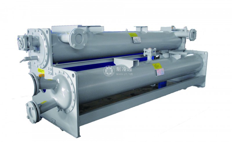 冷凝器的作用是將壓縮機排出的高溫、高壓制冷劑過熱蒸氣冷卻及冷凝成液體。制冷劑在冷凝器中放出的熱量由冷卻介質(水或空氣)帶走。