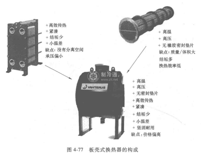 板殼式換熱器是綜合了管殼式與板式換熱器的優(yōu)點(diǎn),開發(fā)的一種新型高效換熱器,如圖4-77所示。