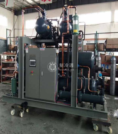 單機壓縮自動復疊機組所采用的制冷劑和兩級復疊機組基本相同,多是鹵代烴類制冷劑,也有采用HC類制冷劑,蒸發(fā)溫度范圍為-60~-180℃,在一些特殊應用場合甚至能達到60K。上海理工大學開發(fā)的一種采用R290/R23/R14/R50的四級單機壓縮自動復疊制冷系統(tǒng)經(jīng)試驗達到了-142℃的低溫。市場上常見的自動復疊機組的壓縮機通常是功率為7.5kW以下的全封閉壓縮機,這些系統(tǒng)的壓力比很小而容積效率很高。制冷量只有幾百瓦甚至幾瓦,一般用于低溫環(huán)境箱、真空鍍膜、低溫醫(yī)療冰箱等場合。
