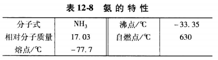 氨在常溫下是一種無色而具有強烈刺激性臭味的氣體,其特性見表12-8所示。