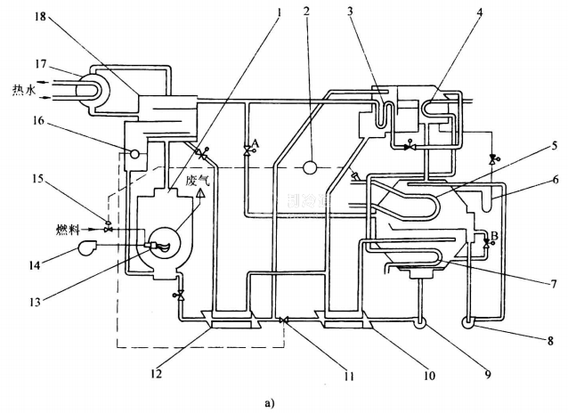 專設(shè)熱水回路的直燃型冷熱水機(jī)組的工作流程