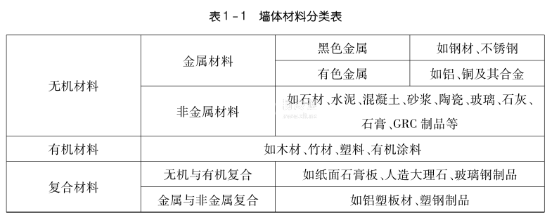因為相同的化學成分,通常有著相似的性質;墻體材料按化學成分可以分成無機、有機和復合材料三大類。如表1一1所示。