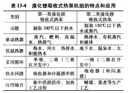 溴化鋰吸收式熱泵機組的特點和應用見表13-4。