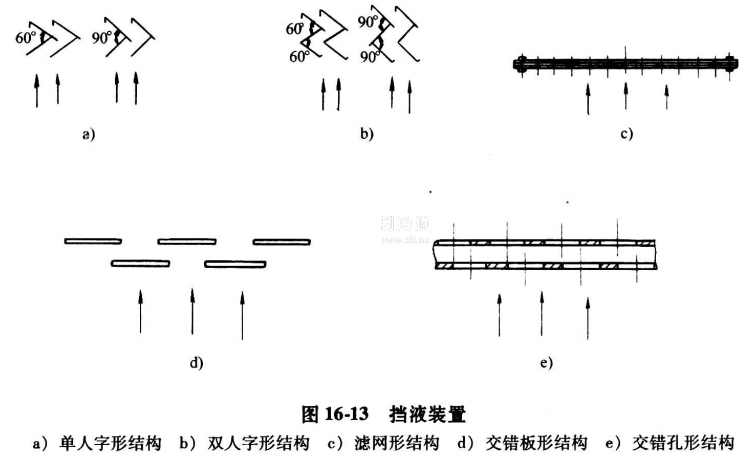 ③擋液裝置。高壓發(fā)生器中,由于溶液沸騰劇烈,湊合了溶液的微小液滴會隨冷劑蒸汽帶入冷凝器中,造成冷劑水污染,引起機(jī)組蒸發(fā)溫度升高,從而使冷水出口溫度升高和制冷量降低。除了降低制冷劑蒸汽流速外,設(shè)置擋液裝置是防止冷劑水污染的必要措施。常用的擋液裝置有人字形結(jié)構(gòu)、濾網(wǎng)形結(jié)構(gòu)、交錯(cuò)板形結(jié)構(gòu)、交錯(cuò)孔形結(jié)構(gòu)等,如圖16-13所示。