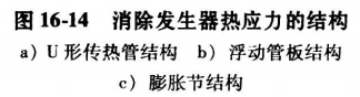 ④消除熱應(yīng)力的結(jié)構(gòu)。由于筒體和傳熱管的熱膨脹系數(shù)相差很大,在高壓發(fā)生器中產(chǎn)生較大的熱應(yīng)力。可以采用如圖16-14所示的U形傳熱管、浮動(dòng)管板和膨脹節(jié)等結(jié)構(gòu),以及對傳熱管進(jìn)行預(yù)處理工藝等方法來消除熱應(yīng)力。