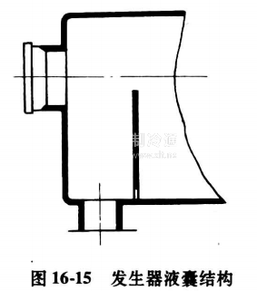 ⑤液囊。通常在濃溶液出口處設(shè)有液囊。液囊內(nèi)設(shè)有限位板,以保持液位高度。限位板高度以保持液面之上暴露1~2排傳熱管為好。暴露的管排鼓動(dòng)換熱,既有利于傳熱、傳質(zhì),又可對溶液的飛濺起阻尼作用。限位板下部有滋流孔。圖16-15所示為發(fā)生器液囊結(jié)構(gòu)。