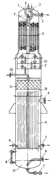 發生器是用來加熱濃氨水溶液到沸騰,并產生一水混合蒸汽的設備。在化工中又稱為沸器、亞沸器、再沸器。發生器屬于壓力容器,一般設計壓力1. 6MPa,設計200℃。加熱熱源主要是蒸汽或廢熱蒸汽。有些情況下,也可采用高溫工業氣體、帶有水蒸汽的工藝物流、高溫熱水等。也有用燃油、燃氣的燃燒產物加熱的。