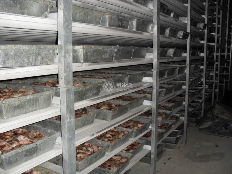 凍結(jié)物冷藏間。庫溫范圍為-18~-35℃。一般肉類的冷凍貯藏溫度為-18~-25℃,水產(chǎn)品貯藏溫度為-20~-30℃,冰淇淋制品貯藏溫度為-23~-30℃,,某些特殊的水產(chǎn)品要求更低的貯藏溫度,達(dá)-40℃以下。我國通常采用的凍結(jié)物冷藏間溫度為-18~-30℃。