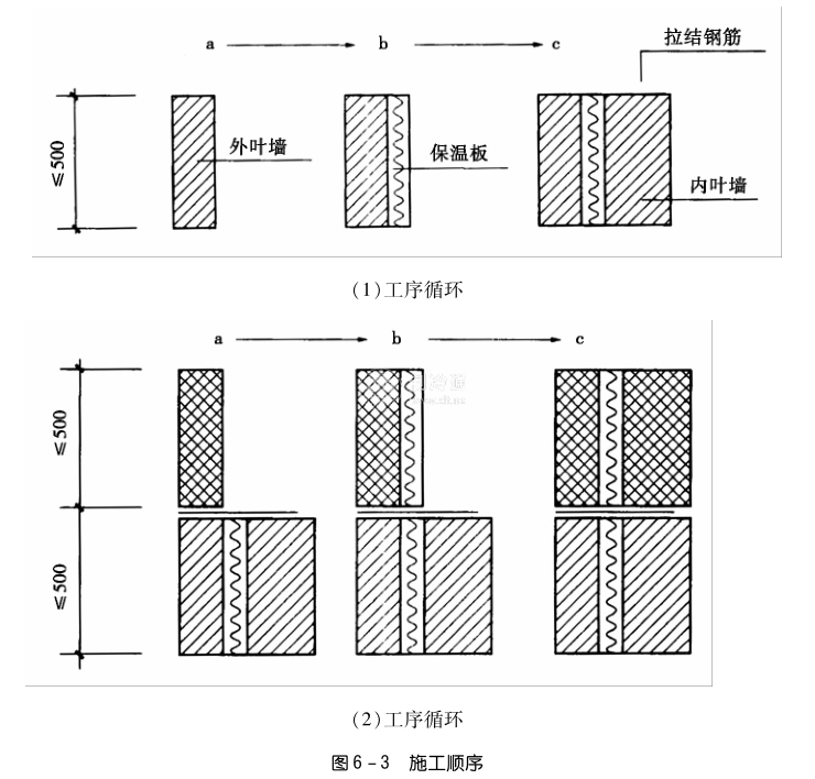 第二,四道工序整個循環過程必須連續作業,使內、外葉墻達到同一標高,并設置拉接鋼筋。