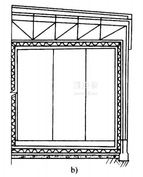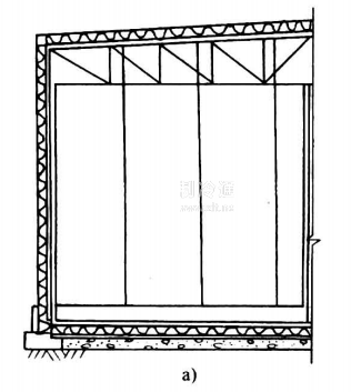 裝配式冷庫的結(jié)構(gòu)承重分為自承重、內(nèi)承重和外承收。一般小型裝配式冷庫多采用自承重式的隔熱頂制板。大、中型裝配式冷庫均采用內(nèi)承屯或外承垂式鋼結(jié)構(gòu),其隔熱預(yù)制板分別設(shè)于鋼結(jié)構(gòu)的外側(cè)或內(nèi)側(cè),見圖18-5。