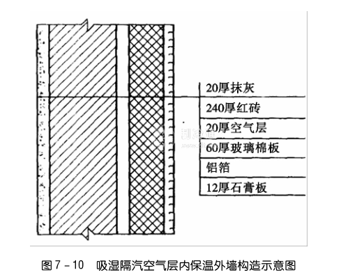 吸濕隔汽空氣層內(nèi)保溫外墻的構(gòu)造示意見圖7-10。