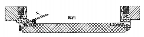 (2)嵌入式平開手動冷庫門 嵌入式平開手動門可分單扇嵌入式和雙扇嵌入式兩種。其特點是門扇四邊設有“z”字形接口,嵌入門框相應的接口內,并有軟密封條和相應的密封面(見圖21-2),且密封性能良好。這種手動門在傳統的小型冷庫中廣泛使用。其缺點是一但門扇或門框變形,會造成密封破壞,維修較困難。