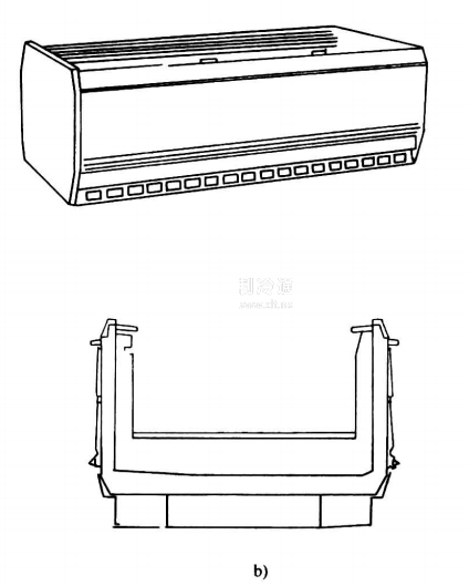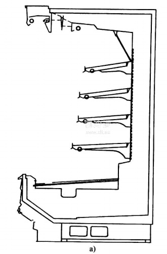 (1)貨架式(見圖26-7a)符號為H,柜內有水平貨架,柜體為立式,冷風是上送風下回風。