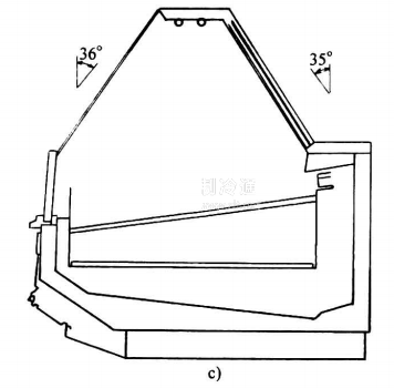 (2)島式(見圖26-7b)符號為D,具有敞開的上開口,貨物水平存放,冷風水平吹送。