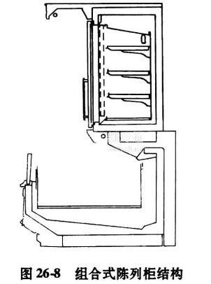 (5)組合式(見圖26-8)符號為Z,它是根據使用上的具體要求,把兩種或兩種以上類似的單個冷柜組合,實現良好的商品展示、冷藏和冷凍貯存作用。