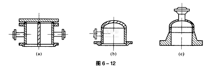 管箱是位于列管式換熱器兩端的重要部件。它把從管道來的流體均勻分布到各傳熱管或把管內流體匯集一起送出換熱器。其結構型式常有圖6-12所示幾種:圖6-12(a)為頂蓋有一個法蘭蓋,當要進行管內清洗時,不需把整個管箱拆下,亦不需拆下接管,只要卸下法蘭蓋就可;圖6- 12(b)為橢圓形管箱,換熱器清洗、檢修時,需把管箱卸下,由于接管在側面,只要把連接接管從管箱上卸開,而不像圖6-12(c)需要把外部接管拆除,才能卸管箱及進行檢修、清洗操作。