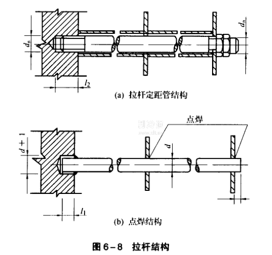 在列管式換熱器中,折流板、支持板的固定通常采用拉桿結構固定。如圖6-8所示。