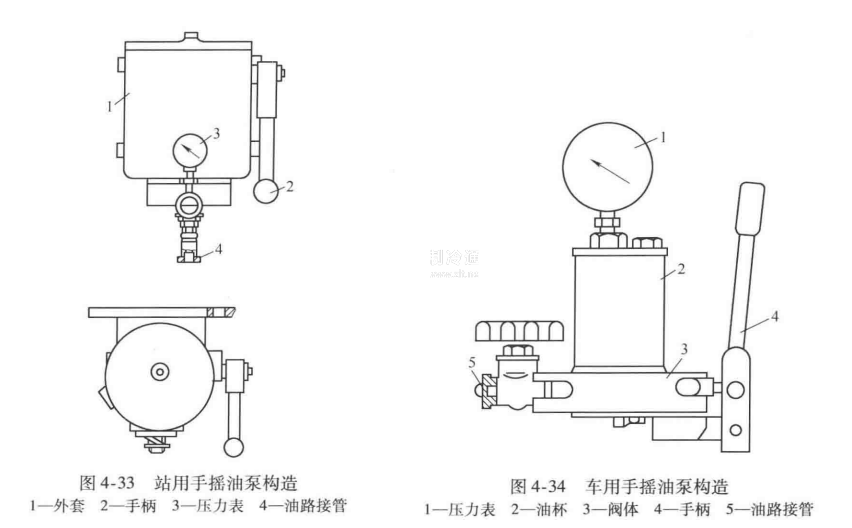 站用和車用手油搖泵的構造,分別如圖4-33、圖4-34所示。