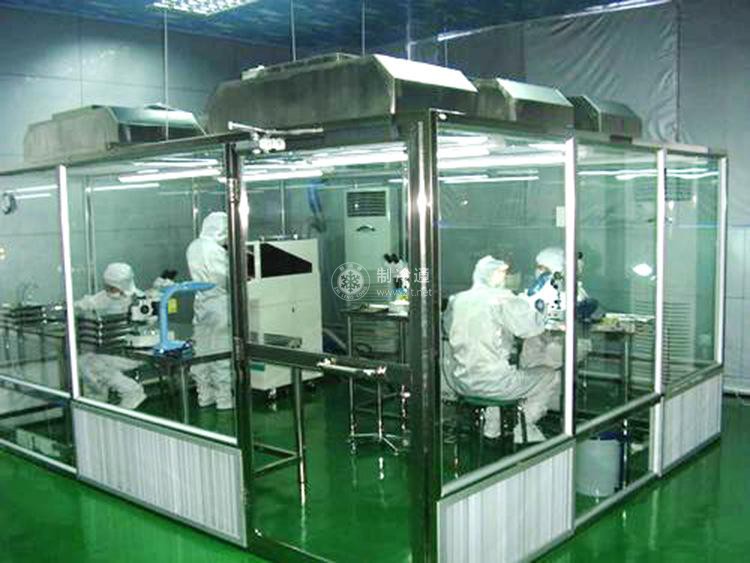 該潔凈室由標準模數的高效過濾器吊頂系統、地板回風系統和固定的周邊回檔(墻板)系統等部分組成。非標準部分必須按設計圖樣特殊定貨加工。與土建式潔凈室相比,它具有工廠加工精度高、質量好、現場安裝進度快,并且能拆裝易地,因此被廣泛使用。這種潔凈室的結構由壁板和框架構成,其板材的彩色夾心鋼板、夾心層為阻燃或不燃的保溫材料。總厚度約為50mm。裝配式潔凈小室亦有水平流和垂直流兩種氣流方式。此外,還有自備空調設備(如柜式、風冷機組)和不帶空調設備的兩種。