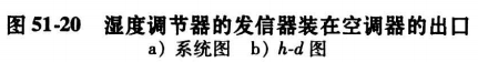 ①濕度調節器的發信器裝在空調器出口,調節噴蒸汽量,控制送風空氣的相對濕度,其方案見圖51-20。