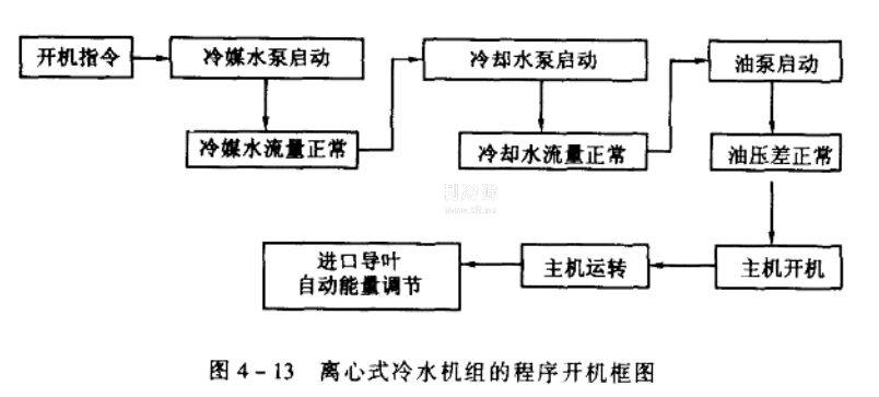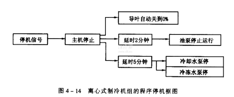 空調用離心式制冷機組的停機程序如圖4-14所示。