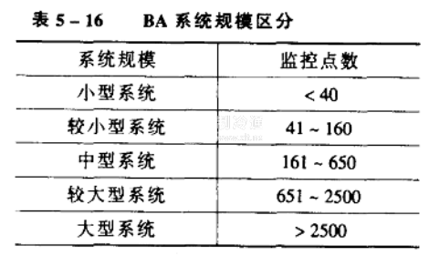 建筑物自動化系統規模的區分,一般是以監控點的數量作為劃分依據的。我國民用建筑電氣設計規范規定的建筑物自動化系統規模區分見表5-16,它引自國外對工業過程實現監控的分布式計算機控制系統的劃分。