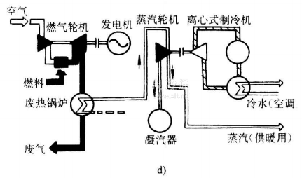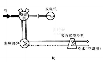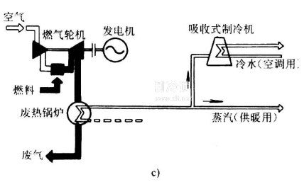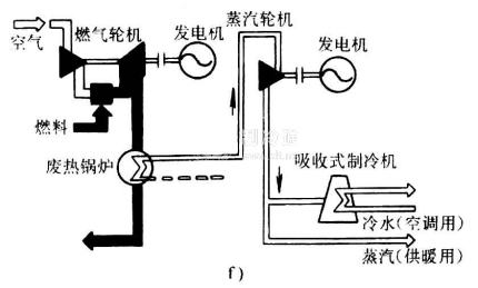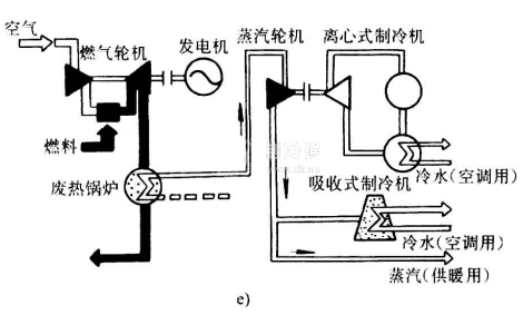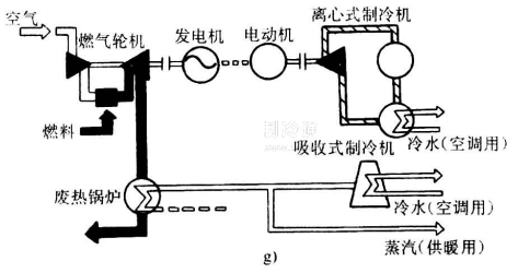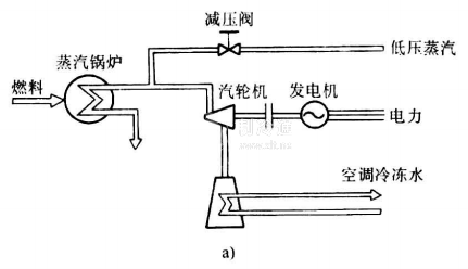 圖54-2a是應(yīng)用比較早,較多用于區(qū)域供熱、供冷中心的一種方式。其最大好處是可采用包括煤、重油之類的各種低質(zhì)低價(jià)的燃料。