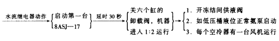 機房控制室接到某凍結間須投入運轉的通知后,值班人員按動該凍結間運轉按鈕,凍結系統即按下列程序投入運行: