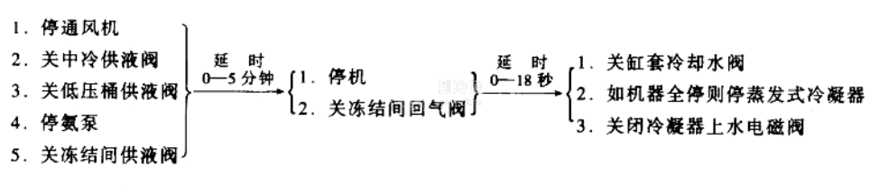 最后一間凍結間“凍結完成”后,系統按下列程序停機。