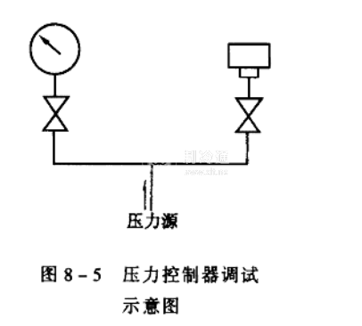 (2)對壓力控制器的特性調試(見圖8-5),可以與壓力控制器并聯接上一只標準壓力表,該壓力表的量程要包括這個壓力控制器的控制范圍。為取得壓力控制器的實際控制壓力值.可在壓力控制器的控制電路中接上指示燈。當指示燈的“亮”和“熄”的時候,從標準壓力表上讀得壓力控制器的實際控制值,檢查動作的靈敏度及控制誤差值。其壓力控制器的壓力源可以是氣壓源,也可以是液壓源。