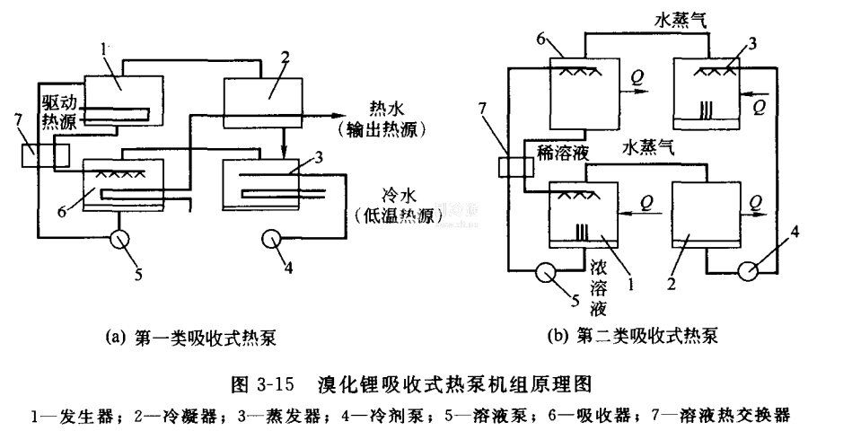(2)溴化鋰吸收式熱泵 嗅化銀吸收式熱泵又分為第一類和第二類兩種