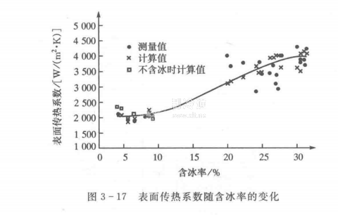 在相同前提下,表面?zhèn)鳠嵯禂?shù)隨含冰率的變化見圖3-17。